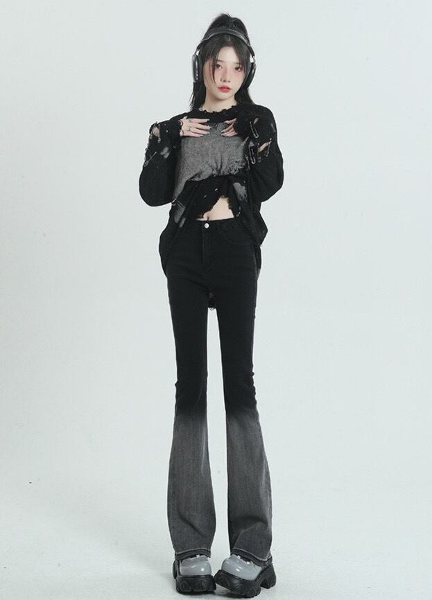 グラデーションクラッシュカラーマイクロフレアージーンズ