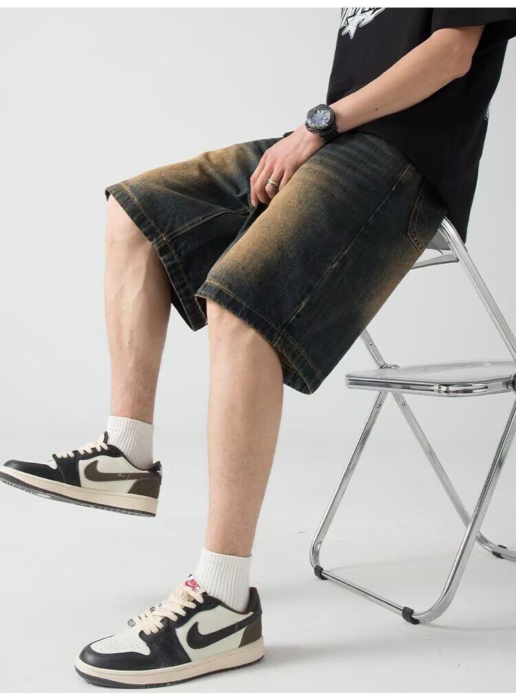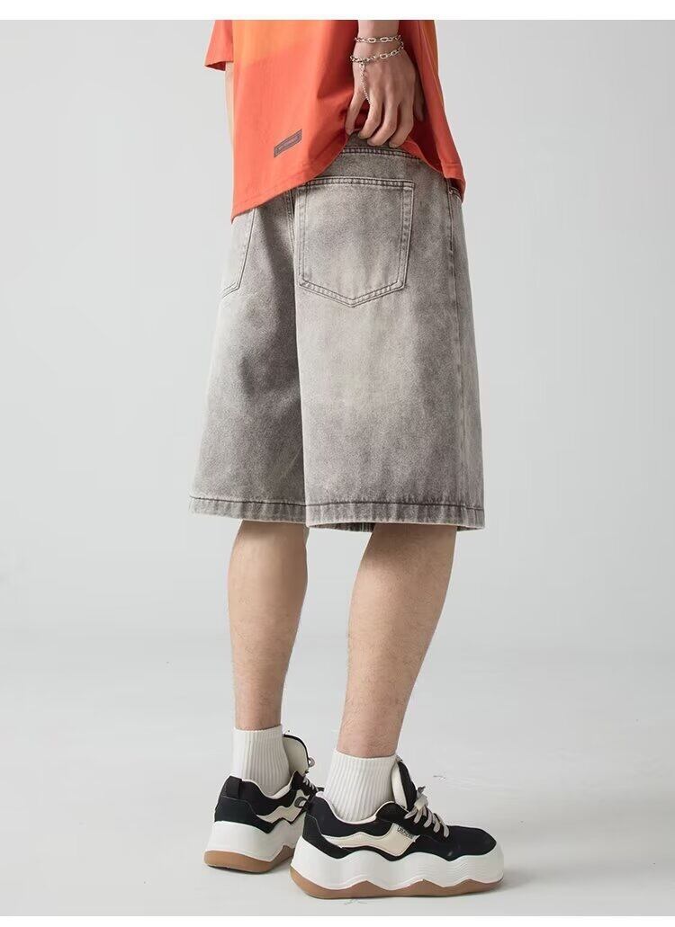 【2色】ユーズド加工デニムハーフパンツ