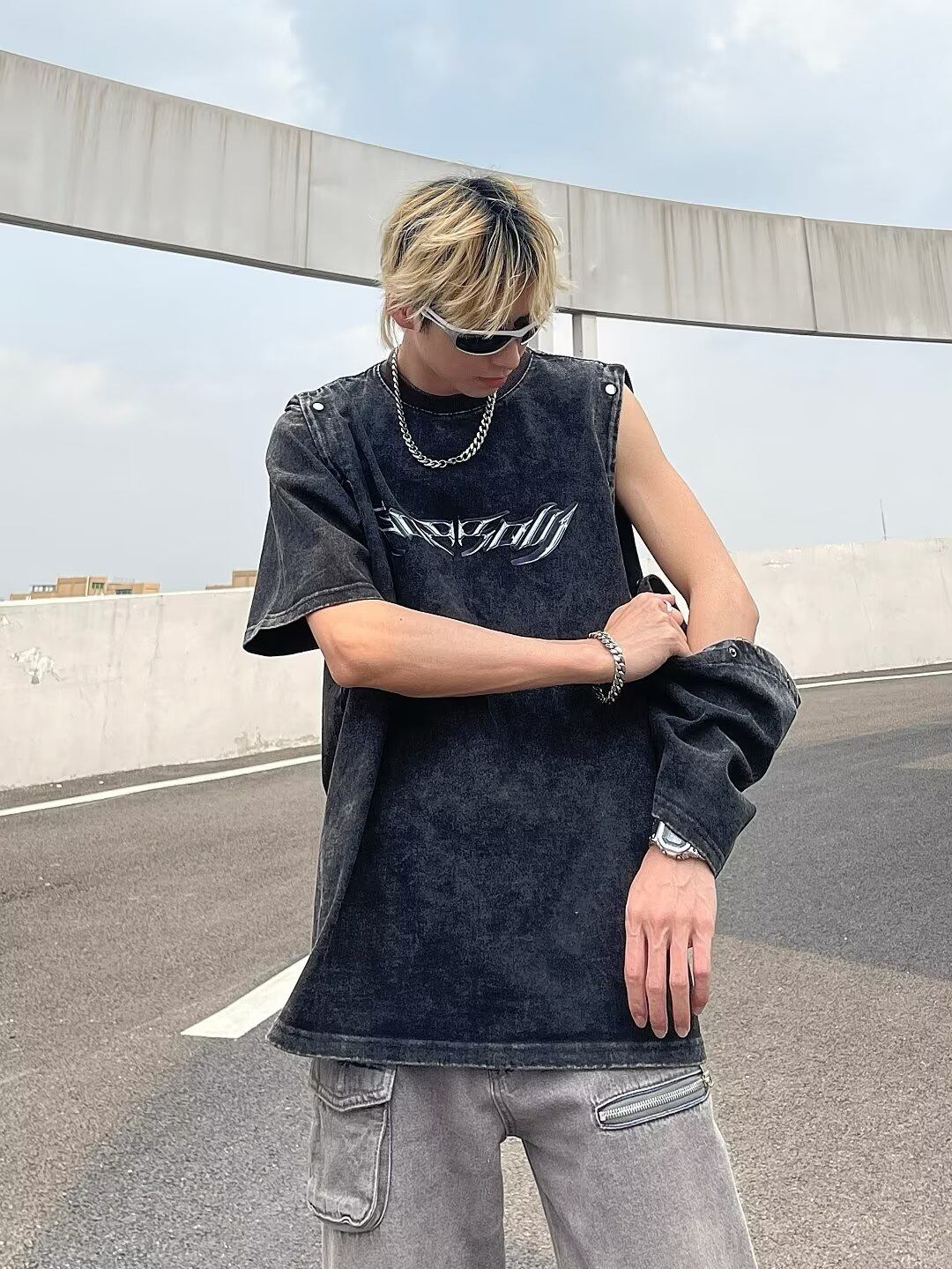 2WAY ショルダーボタン タンクトップ ストリート ヴィンテージ