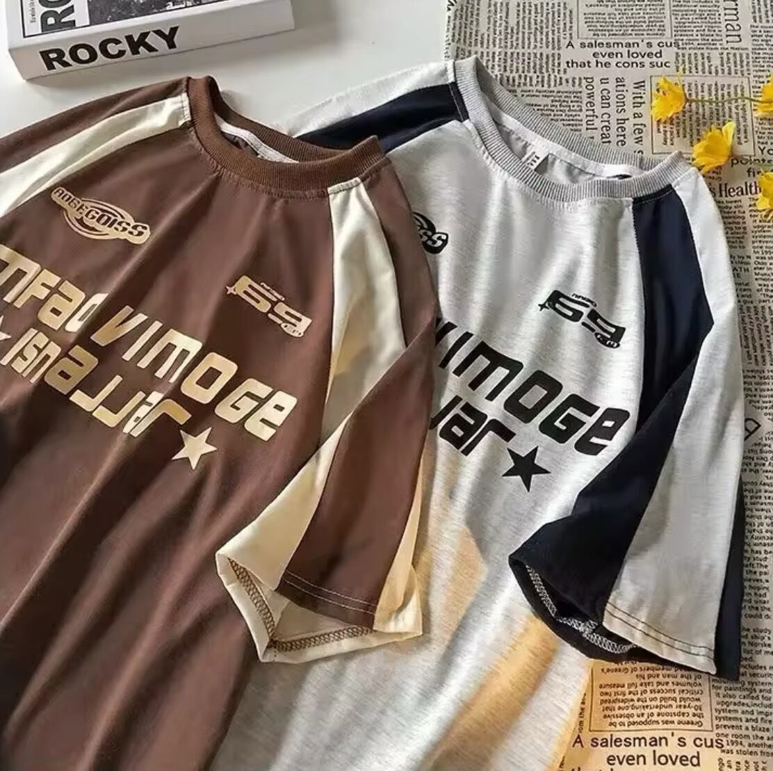 【2色】ラウンドネックY2KTシャツ